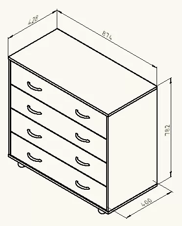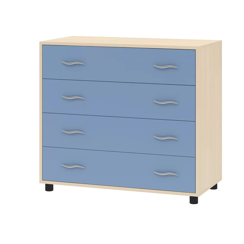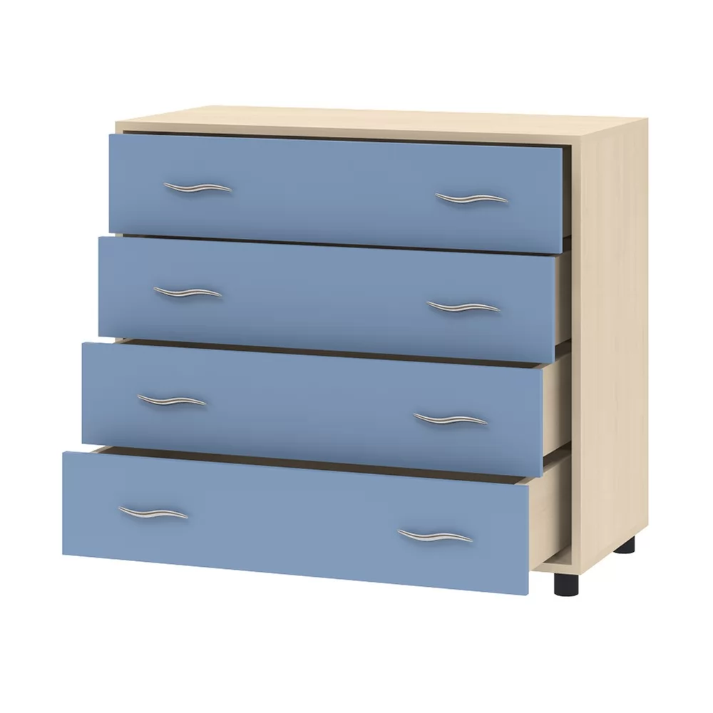 Комод станет прекрасным решением для детской комнаты. Модель содержит 4 вместительных выдвижных ящика, которые позволят удобно расположить все необходимые вещи. Данная модель может быть с успехом скомбинирована с другими предметами корпусной мебели.