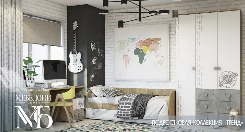 Подростковая коллекция для спален «Тренд» - ультрасовременное интерьерное решение для развития творческого потенциала ярких представителей прогрессивной молодежи.