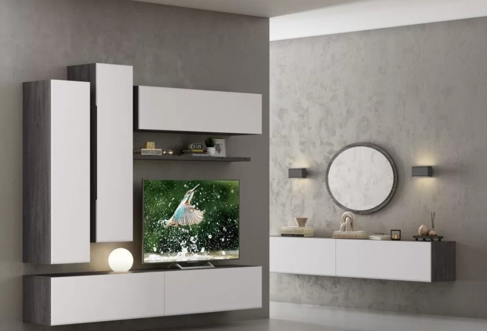 Новые модули, новые цвета. Фасады МДФ под пленкой ПВХ, стекло серое тонированное с обработкой фацет, петли с доводчиком, ящики укомплектованы направляющими полного выдвижения. Особенностью серии является интегрированная ручка, которая придает гостиной индивидуальность и практичность.