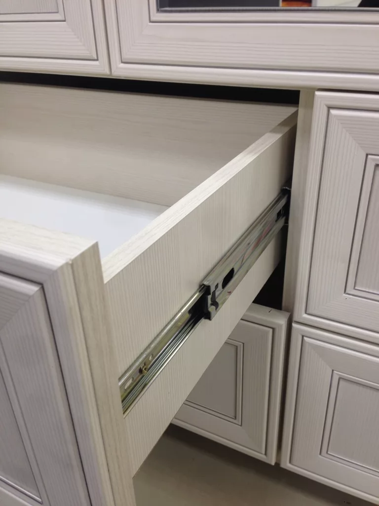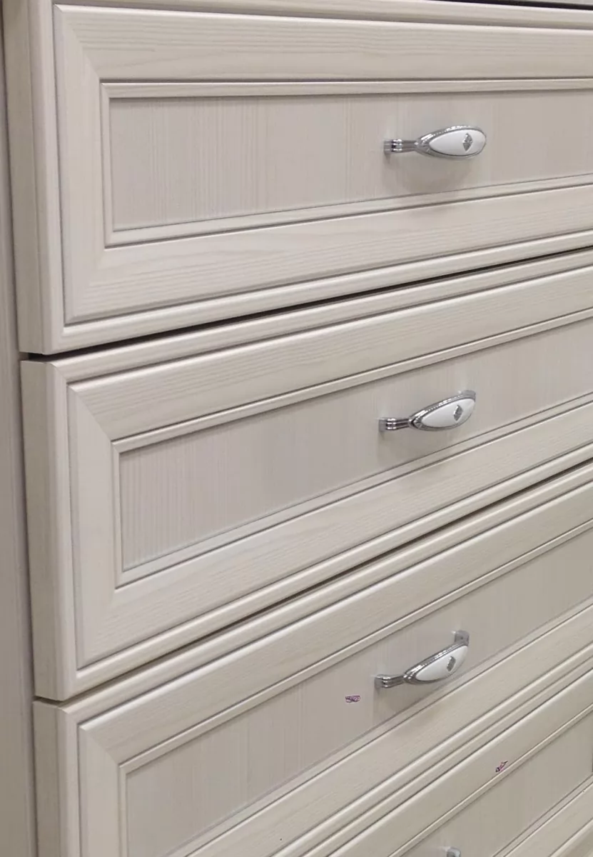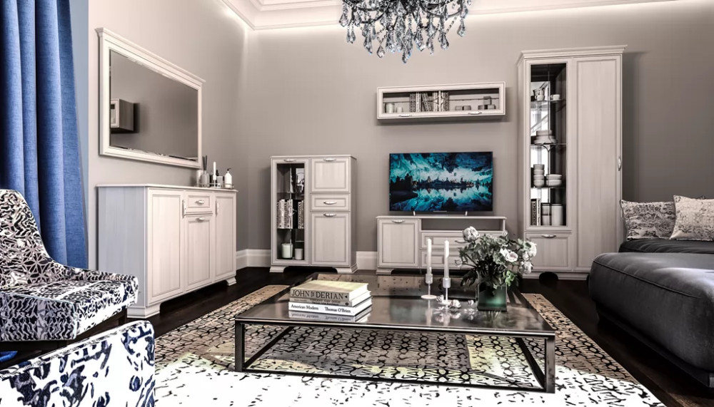 Гостиная «Венеция» выполнена в светлом декоре «Бодега светлая», в лучших классических традициях. Шариковые направляющие полного выдвижения обеспечивают комфортную эксплуатацию выдвижных ящиков, и использование всего пространства ящика. Ручки металлические цвет – «Хром глянцевый» с белой вставкой