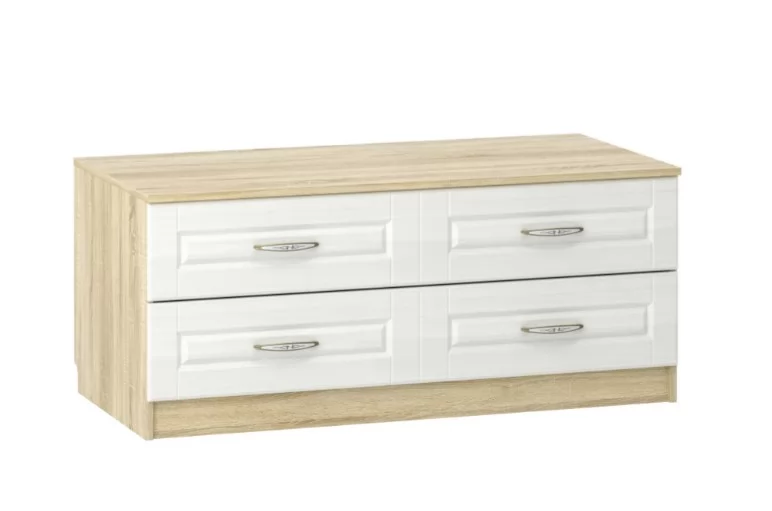 Комод, тумба под TV и шкаф для одежды – данный комплект мебели не перегрузит пространство, при этом обеспечит необходимый функционал: места для хранения документов, декора и даже одежды (шкаф оснащен выдвижной штангой); зона TV.