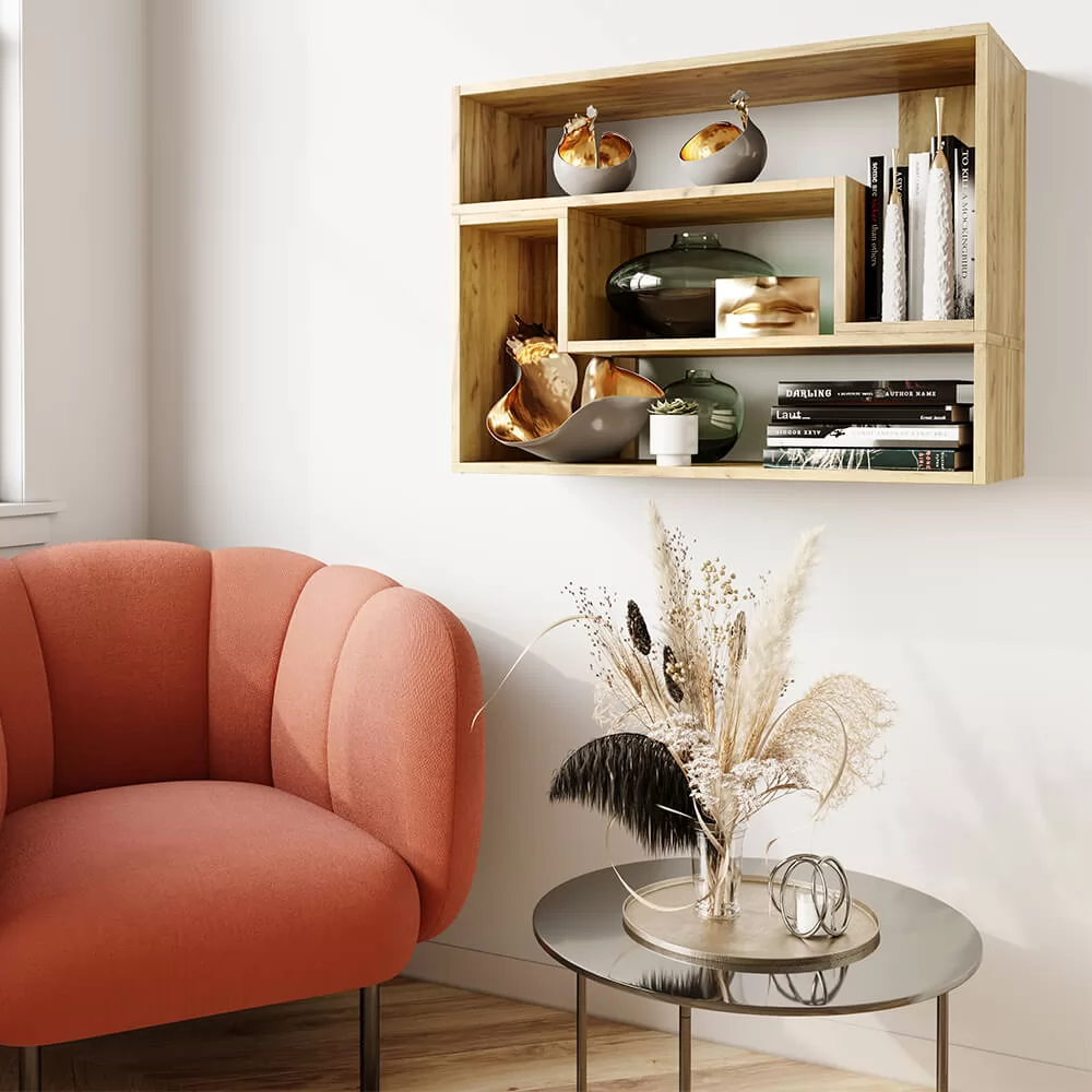 Такой прием позволит вам организовать дополнительное место хранения для книг и предметов декора в любой комнате. Её можно крепить на стену, а можно и разместить на полу.