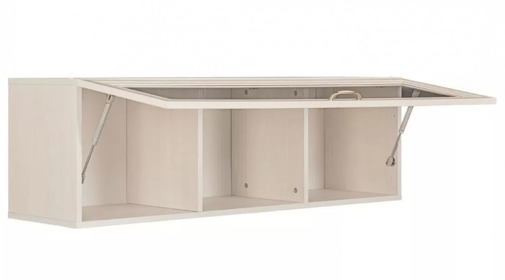 Навесной шкаф "Бьянка" №10.69 включает в себя три секции за стеклянной дверцей.