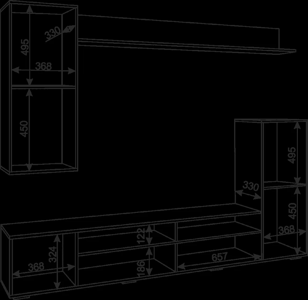 2. Гостиная состоит из двух частей: монолитной напольной и навесной.