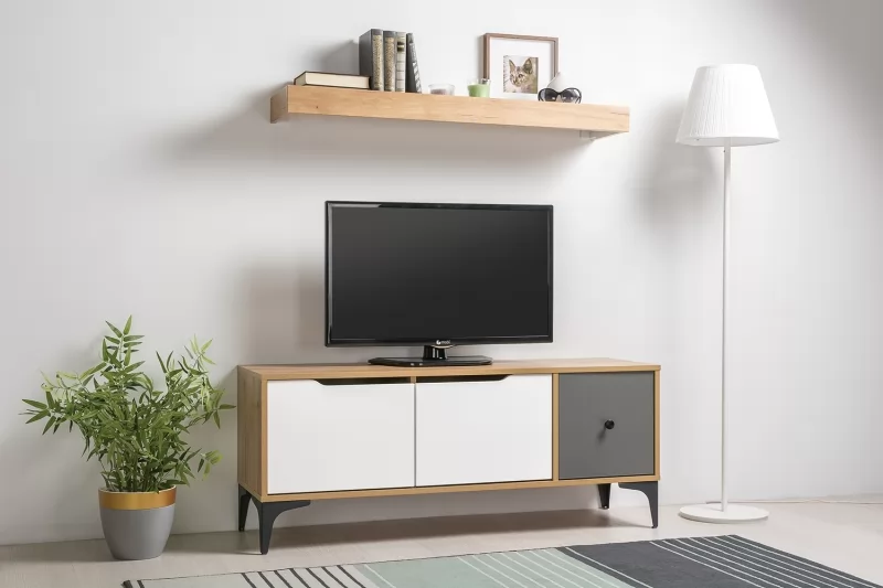 Тумба Вайс гармонично сочетает в себе строгий и брутальный декор крафтового дуба со спокойными скандинавскими фасадами.