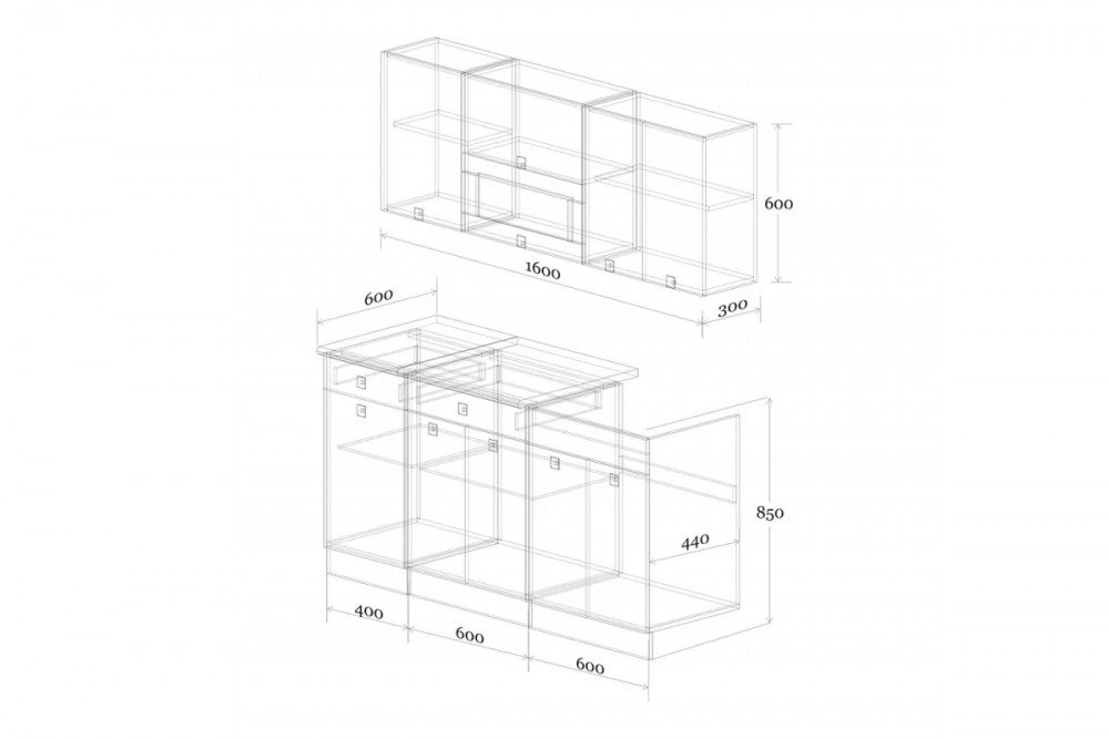 Размеры (Ш*Г*В):1600*280/600*600/850 мм