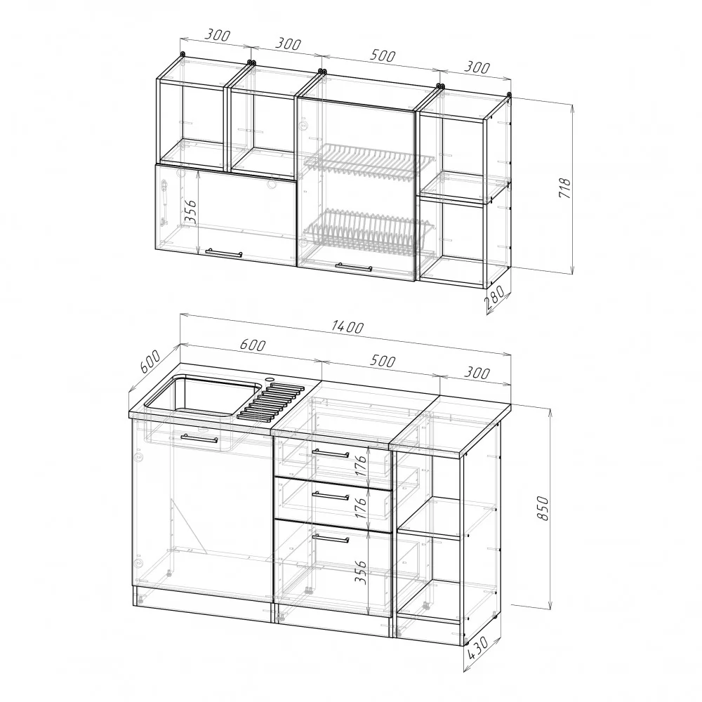 Кухонный гарнитур Ольга медиум 3 1400 мм в Когалыме