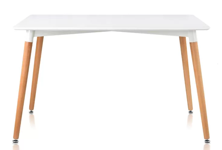 Стол в стилей Eames — настоящий хит скандинавского дизайна, уже несколько лет не теряющий своей популярности. Столешница выполнена из экологичного матового МДФ, по износостойкости и долговечности превосходящего натуральную древесину. Белый цвет столешницы привносит в пространство ощущение чистоты и свежести. Ножки из цельного массива светлого бука и геометрические металлические подпорки делают стол невероятно устойчивым и прочным. Благодаря натурального расцветке и округлой форме стол в стиле Eames DSW идеально впишется как в жилое помещение, так и в общественную зону кафе или ресторана, особенно хорошо подчеркнув интерьер в стиле минимализм или хай-тек.