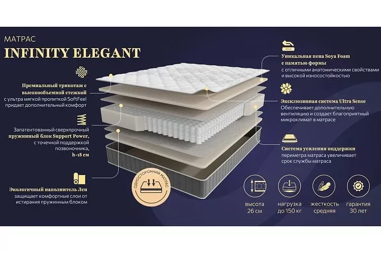 Матрас INFINITY ELEGANT 1400*2000мм (Пена/лен, ср.жесткий, h 26см)