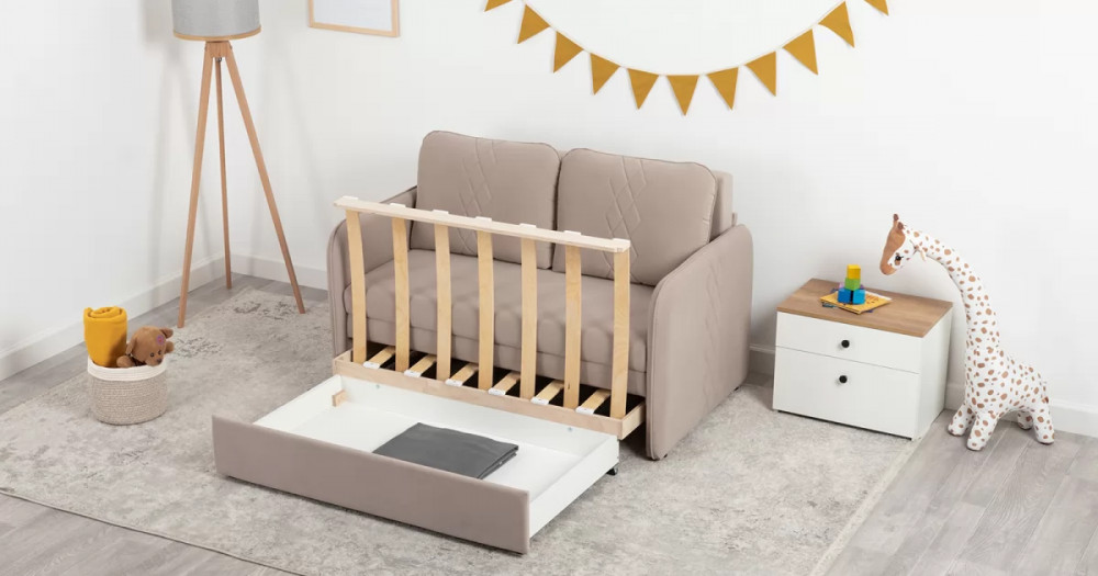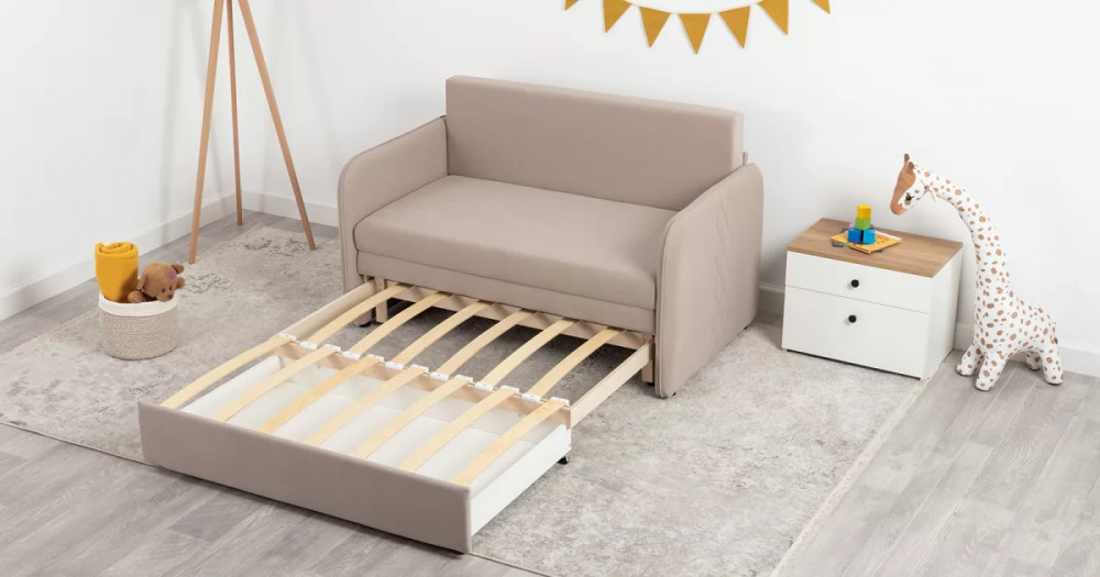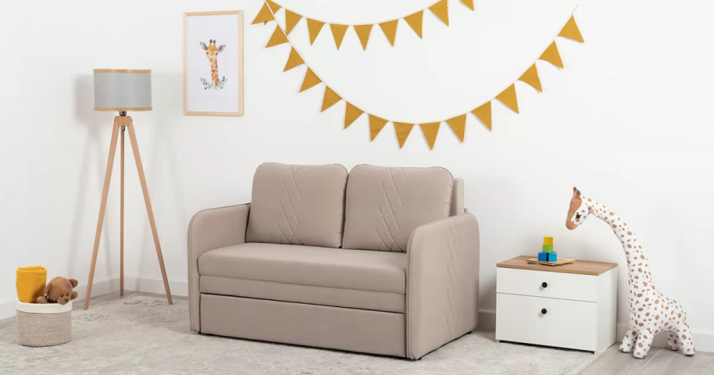 Стильный компактный диван для детской и гостиной. При своих скромных размерах он трансформируется в полноценное спальное место для детей и подростков. Лаконичный дизайн в виде декоративной отстрочки подчеркивает фактуру велюра, а небольшие размеры позволят разместить его в любом пространстве.