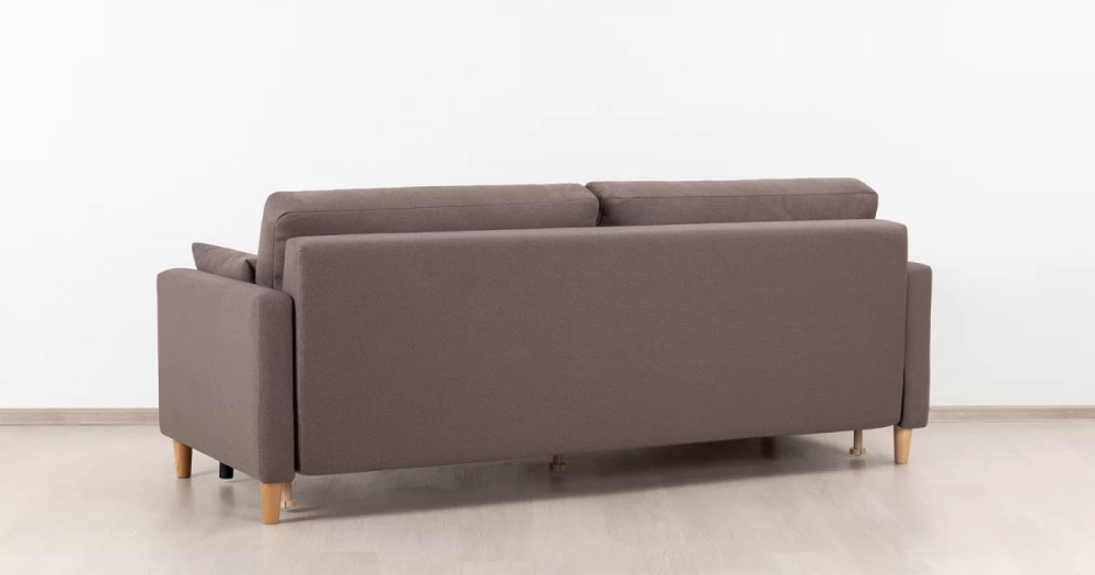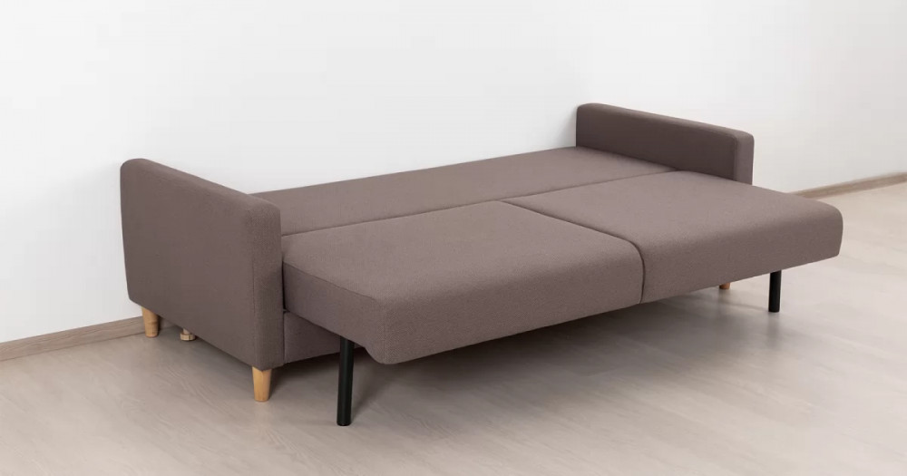 Дилан Диван-кровать арт. ТД 421Габаритысложенный (Д x Г х В, мм): 2170 x 960 x 880разложенный (Д x Г х В, мм): 2170 x 1370 x 620спальное место (Д x Ш, мм): 1910 x 1370высота посадки (мм): 460глубина сиденья (мм): 570высота спинки (мм): 420высота подлкотника от сиденья (мм): 160максимально допустимая нагрузка: 80 кг на одно посадочное место, 100 кг на одно спальное местоМеханизм трансформацииЕврокнижка с механизмом раскладки «тик-так»Бельевой ящикестьс перегородкой по центру (2 отделения)размер отделения (Д x Ш, мм):  786 x 688 x 120Материалыосновная ткань: Лаунж (шенилл) / Сага (рогожка)выполняется в тканях: Сага браун (бронзовый)каркас: фанера