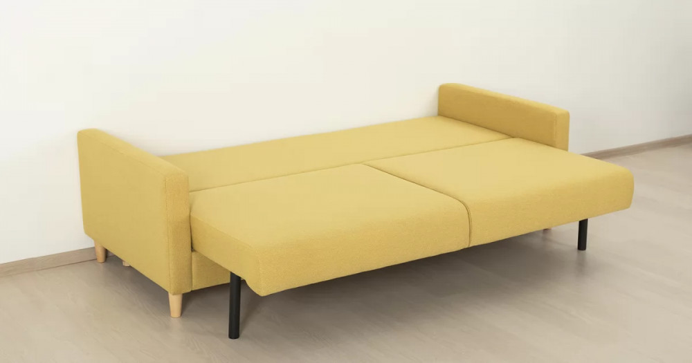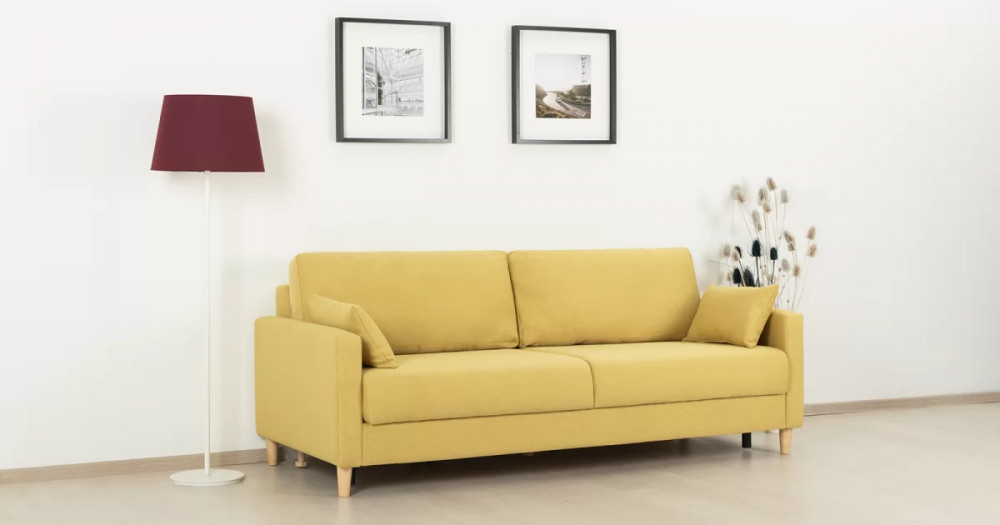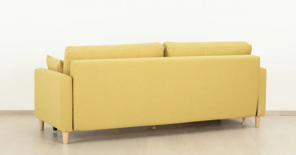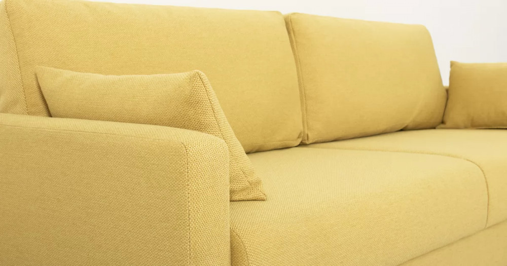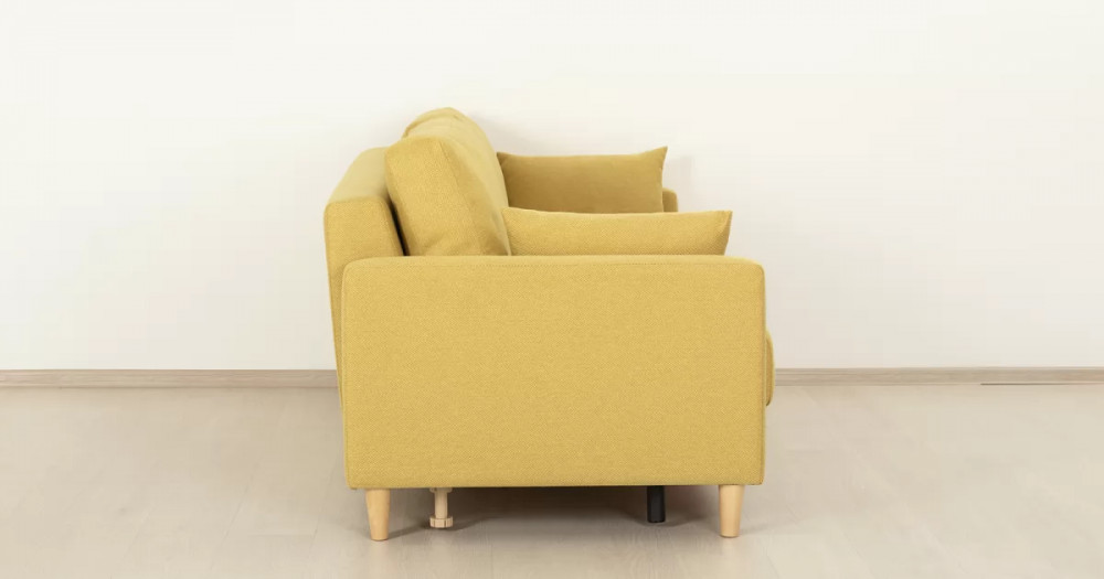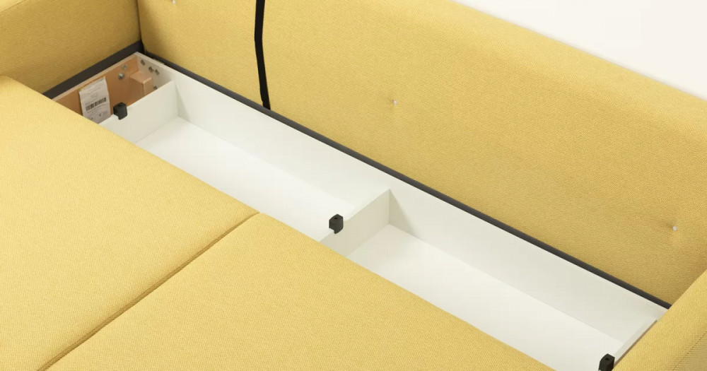 Дилан Диван-кровать арт. ТД 424Габаритысложенный (Д x Г х В, мм): 2170 x 960 x 880разложенный (Д x Г х В, мм): 2170 x 1370 x 620спальное место (Д x Ш, мм): 1910 x 1370высота посадки (мм): 460глубина сиденья (мм): 570высота спинки (мм): 420высота подлкотника от сиденья (мм): 160максимально допустимая нагрузка: 80 кг на одно посадочное место, 100 кг на одно спальное местоМеханизм трансформацииЕврокнижка с механизмом раскладки «тик-так»Бельевой ящикестьс перегородкой по центру (2 отделения)размер отделения (Д x Ш, мм):  786 x 688 x 120Материалыосновная ткань: Лаунж (шенилл) / Сага (рогожка)выполняется в тканях: Сага еллоу (желтый)каркас: фанера