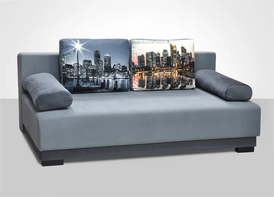 "Комбо 1" - прямой диван в современном стиле с валиками вместо подлокотников и с мягкими подспинными подушками. Основание дивана и подушки могут быть выполнены в контрастных цветах. Диван раскладывается в двуспальную кровать, механизм трансформации "Еврокнижка".