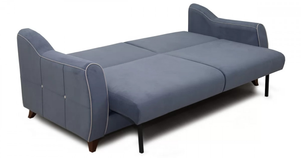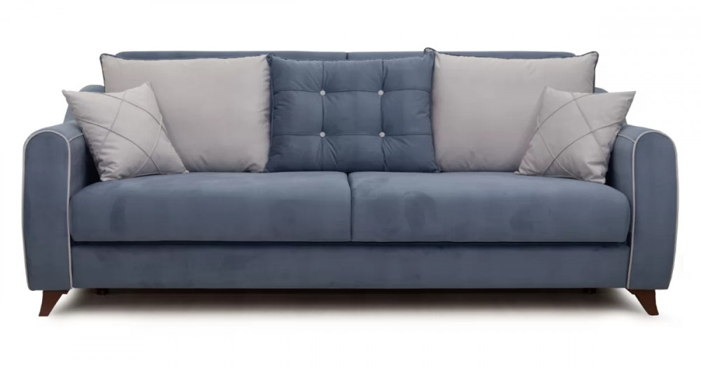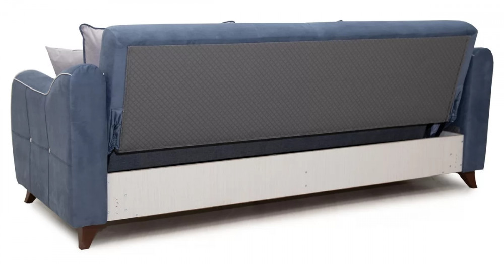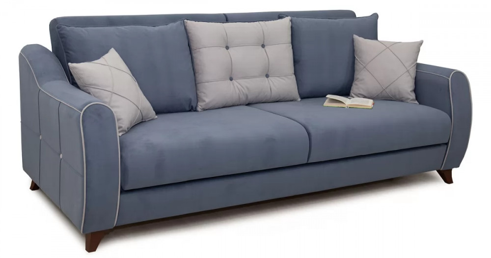 Френсис Диван-кровать арт. ТД 263Габаритысложенный (Д x Г х В, мм): 2280 x 1030 x 900спальное место (Д x Ш, мм): 1950 x 1310высота посадки (мм): 480глубина сиденья (мм): 570максимально допустимая нагрузка: 80 кг на одно посадочное место, 100 кг на одно спальное местоМеханизм трансформацииКнижка с 0 стенойБельевой ящикестьс перегородкой по центру (2 отделения)размер отделения (Д x Ш, мм): 890 x 840 x 200Варианты исполнения5 артикуловсочетание тканей только как на фотоМатериалыосновная ткань: Амиго (велюр)выполняется в тканях: Амиго нэви (серо-синий), Амиго эш (светло-серый)каркас: фанера деревянный брус ДСП ДВП ЛДСП ДВПооснование матраса: ППУ на блоке плоских пружин «змейка», периотекприспинные подушки, шт: 3декоративные подушки, шт: 2наполнитель подушек: полиэфирное волокно «шарики»материал опор: пластикцвет опор: коричневыйДекордекоративный кант, пуговицы, отстрочка, утяжки на подушках и подлокотникахНазначениев гостиную в гостевую комнатуТребуется ли сборкадаУпаковкаколичество коробок, шт: 2общий вес с упаковкой, кг: 88Гарантия: 18 месяцев