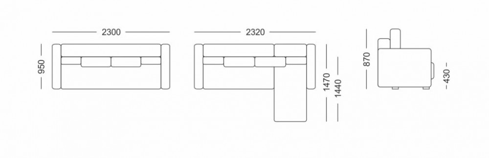 Габаритные размеры: 2300х970х870 мм