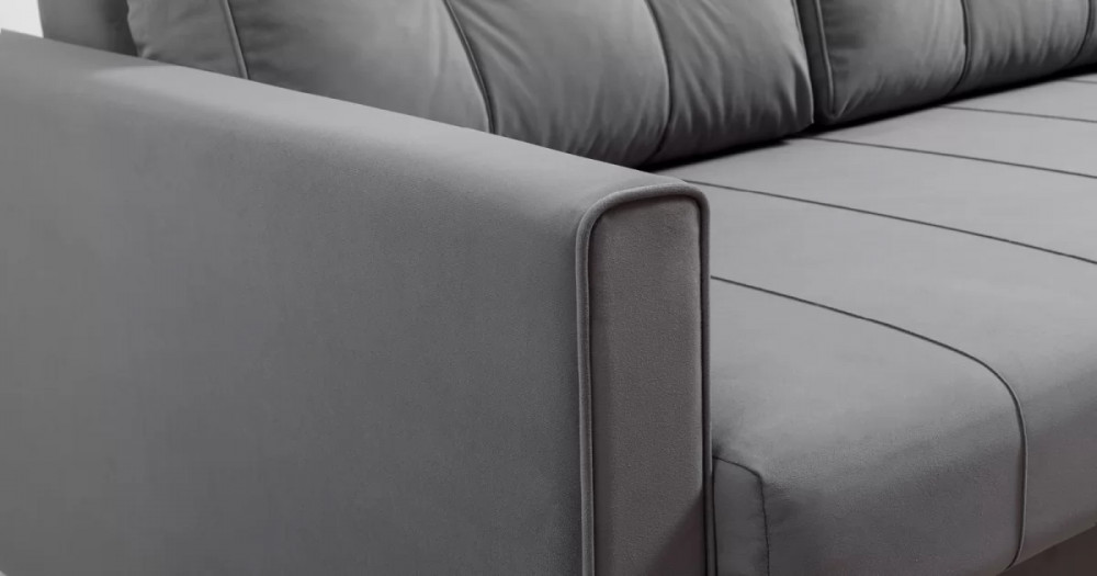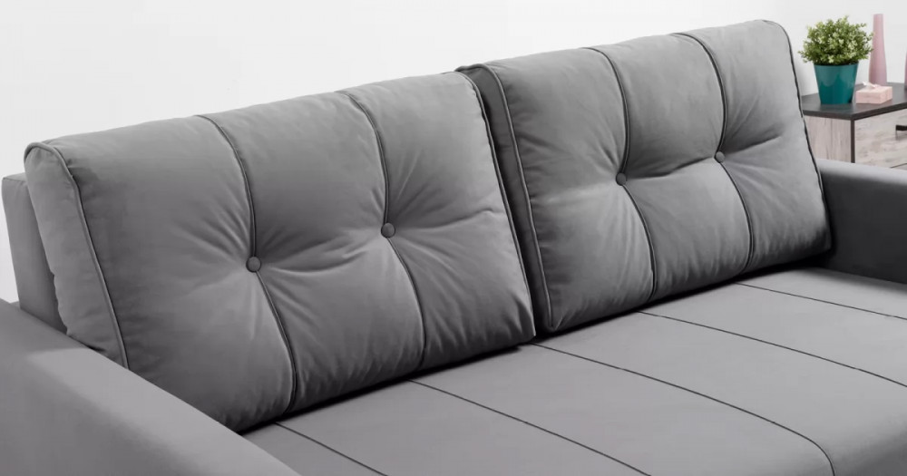 У дивана-кровати «Лео» двусторонняя спинка. Это позволяет установить её технической тканью как наружу, так и внутрь по выбору покупателя.