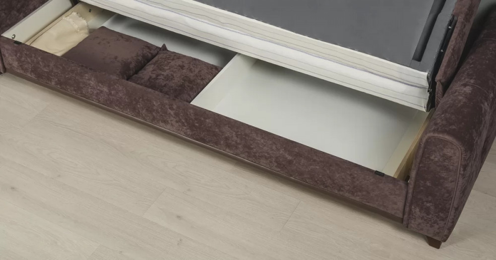 ДВПооснование матраса: ППУ на блоке плоских пружин "змейка"приспинные подушки, шт: 2съемные чехлы приспинных подушек: естьдекоративные подушки, шт: 2наполнитель подушек: крошка поролона и полиэфирное волокноматериал опор: пластикцвет опор: коричневыйвысота опор (мм): 80Бельевой ящикестьс перегородкой по центру (2 отделения)размер отделения (Д x Ш, мм):  890 x 840 x 200Требуется ли сборкадаУпаковкаколичество коробок, шт: 2общий вес с упаковкой, кг: 82,4Гарантия: 18 месяцевГабаритысложенный (Д x Г х В, мм): 2340 x 1050 x 910разложенный (Д x Г х В, мм): 2340 x 1310 x 600спальное место (Д x Ш, мм): 1950 x 1310высота посадки (мм): 470глубина сиденья (мм): 500высота спинки (мм): 540высота подлокотника от сиденья (мм): 180максимально допустимая нагрузка: 80 кг на одно посадочное место, 100 кг на одно спальное местоМеханизм трансформацииКнижка с 0 стенойБельевой ящикестьс перегородкой по центру (2 отделения)размер отделения (Д x Ш, мм):  890 x 840 x 200Декорзащипы на подушках и подлокотниках с утяжкой на 2 пуговицы из осн. материала, защипы на сидушке, декоративный кант на передних торцах подлокотников