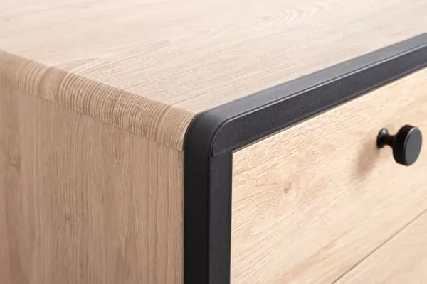 Каркас из металла, столешница из МДФ с закруглением и тактильно приятные металлические ручки с накаткой – визитная карточка модели.