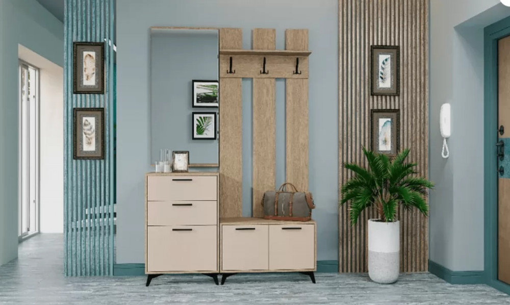 ЕВА Прихожая, ЛДСП Дуб экспрессив песочный / ЛДСП Сатин в Когалыме