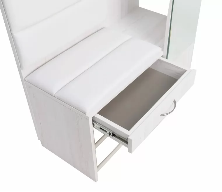 Ширина (мм): 800 Высота (мм): 2000 Глубина (мм): 350 Цвет: Винтерберг/Люкс Милк Материал: ЛДСП/Зеркало Вес, кг: 48 Объем, м3: 0.12 Коллекция: Ольга-Милк Стиль: Современный Размер зеркала: 296х1450 мм Корпус — ЛДСП 16 мм Кромка ПВХ 1 мм Направляющие — шариковые Металлическая фурнитура Зеркало с фацетом Мягкий элемент — экокожа (Люкса Милк) Полка для обуви Регулируемые опоры