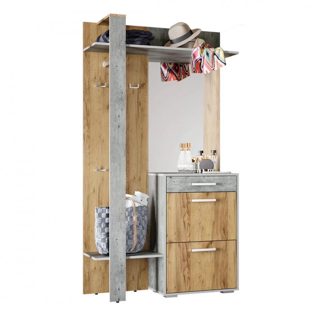 на открытой панели со штангой, крючками и полками найдется место для верхней одежды, сумок, шарфов и зонтов,