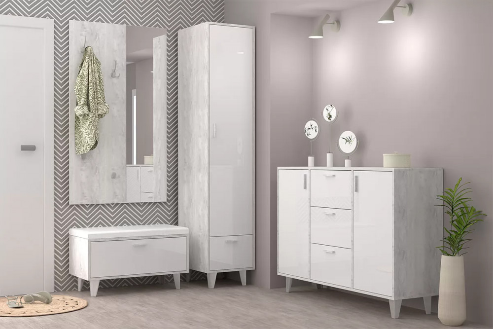 Комод Эго К-2, бетон светлый/белый глянец, на ножках 1 шт