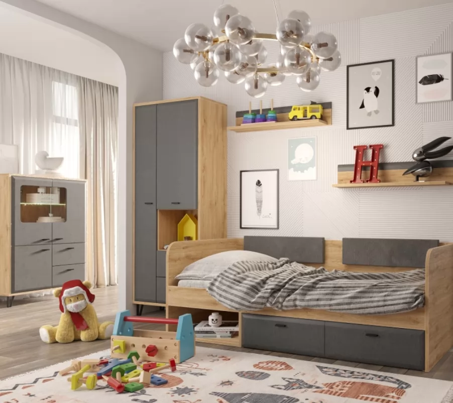 Распашной шкаф Grace дуб наварра/графит REG2D2S благодаря своему универсальному цвету подойдет для многих интерьерных решений.
