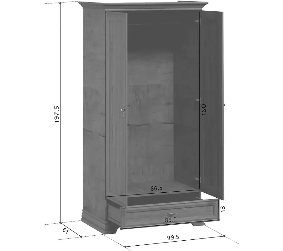 *Размеры (ШхВхГ), мм:1000*1980*610 мм