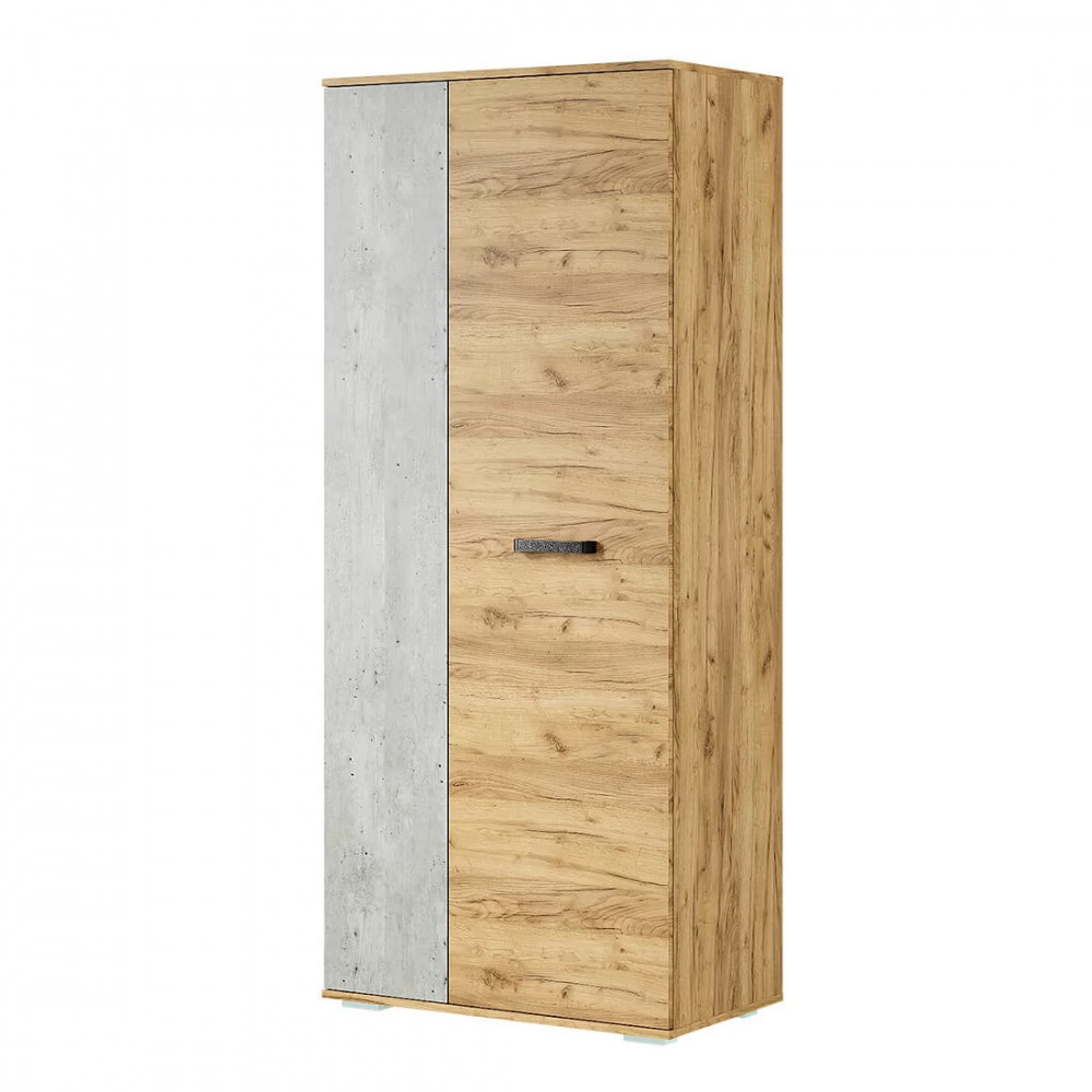 -модель выполнена из ЛДСП натурального оттенка дерева в комбинации со вставкой, эмитирующей бетонную поверхность,
