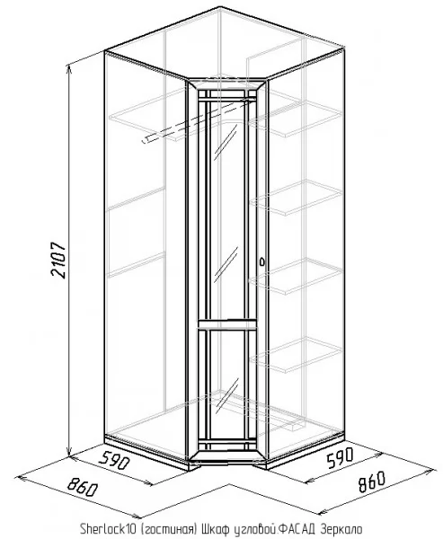 Шкаф угловой 10 с зеркалом Sherlock в Когалыме