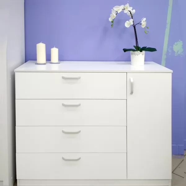 За счет дополнительного отсека с распашной дверкой функциональность комода расширена - можно разместить что-то более крупное.