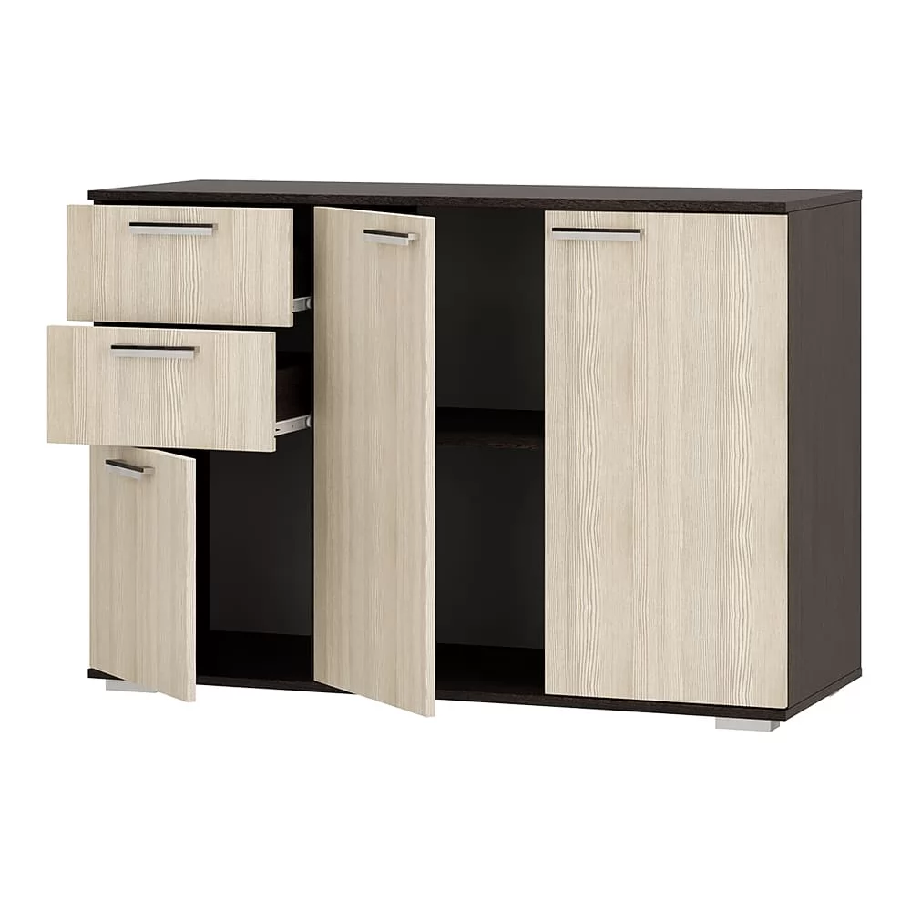 Комод Стандарт №3 шириной 1200 мм имеет необычное размещение полок и ящиков.