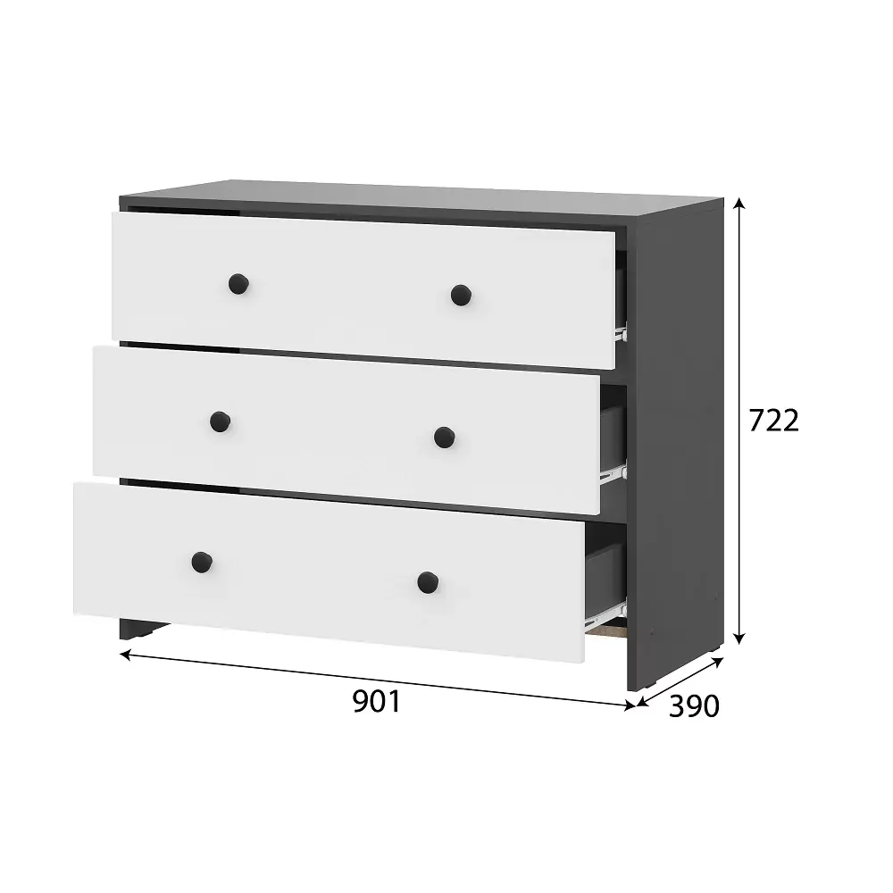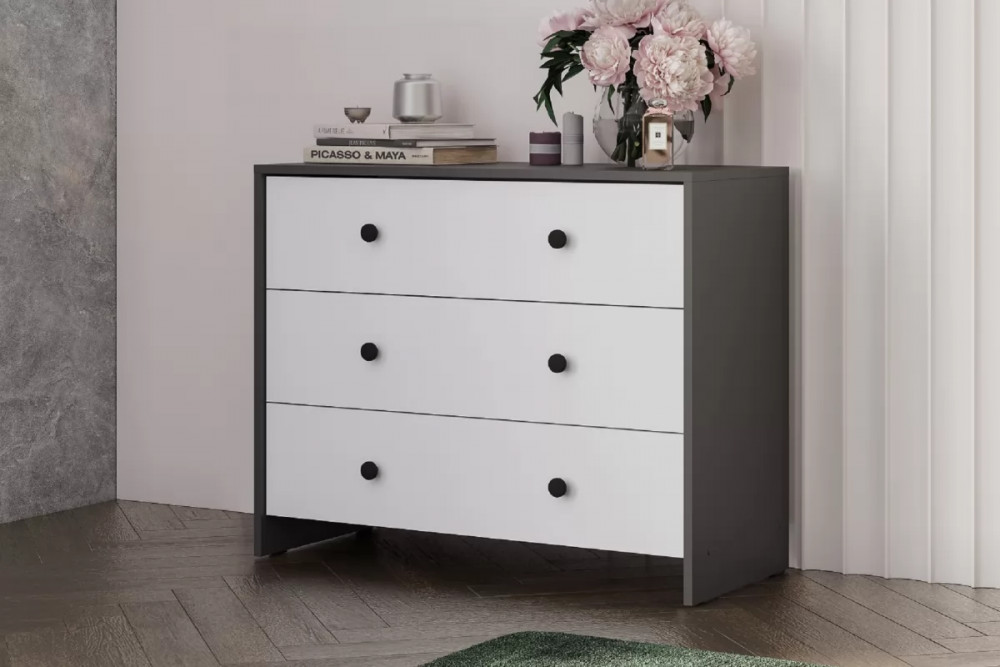 Модульная система "Дольче" Комод 3 ящика Графит / белый в Когалыме