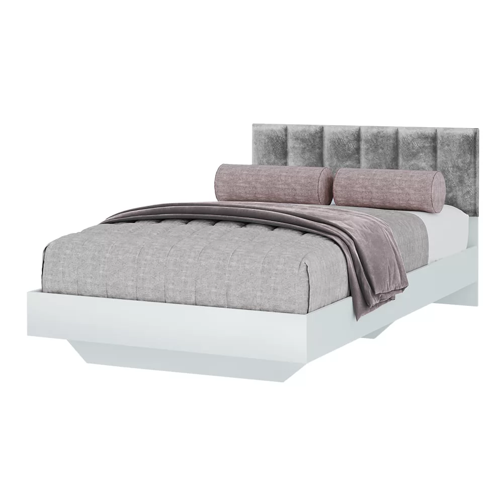 -мягкое изголовье, обтянутое велюром серого цвета, делает модель очень уютной и комфортной.