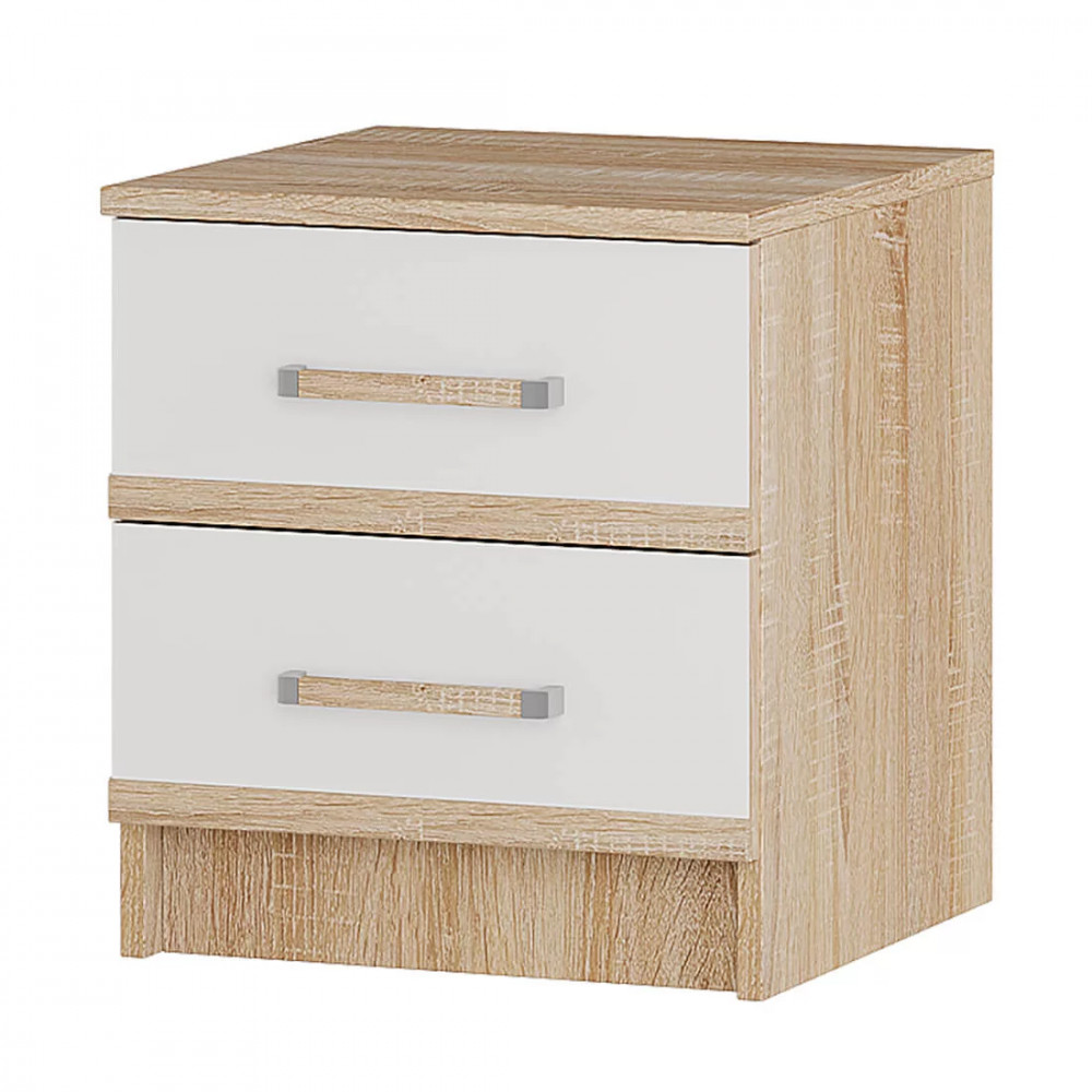 Вы сможете разместить в них необходимые вещи и аксессуары, которые должны быть под рукой. Модель выполнена из ЛДСП двух классических цветов сонома и белый. Два выдвижных ящика оснащены эргономичными ручками.