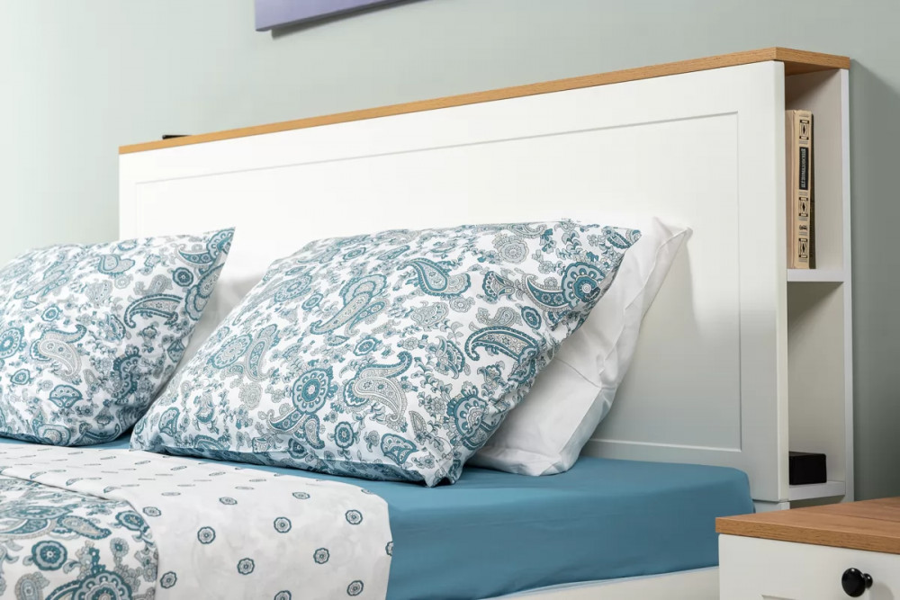В изголовье кровати предусмотрены вместительные ниши. Шкафная группа полноценной глубины