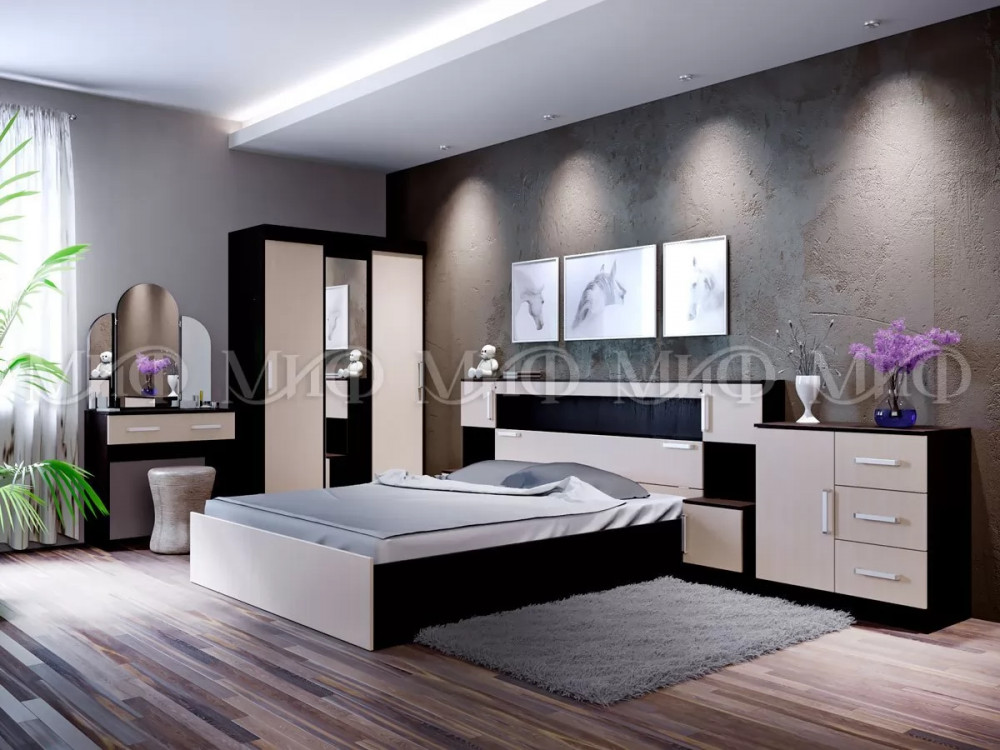 Спальный гарнитур Басямиф, дуб беленый/венге в Когалыме