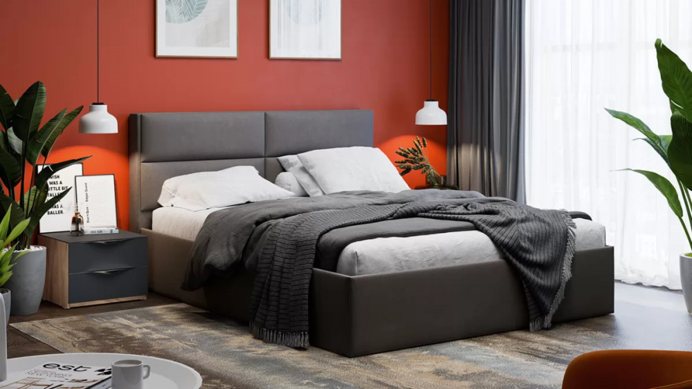 Кровать с ПМ «Глосс» Тип 1 (с подъемным механизмом) с заглушиной Велюр Графит