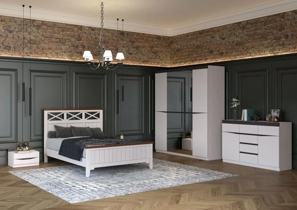 • Кровать Грация-5 Белый античный/Дуб коньяк с ортопедическим основанием